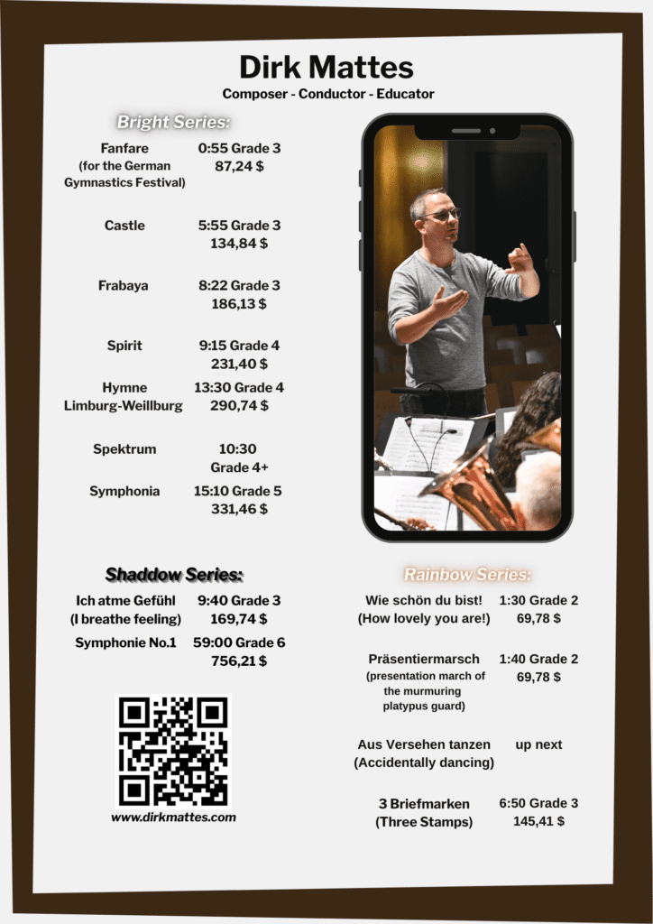 My portfolio for concertband at the last Midwest Clinic in Chicago! I´m looking forward to get in touch with you. Please don´t hesitade to contact me!